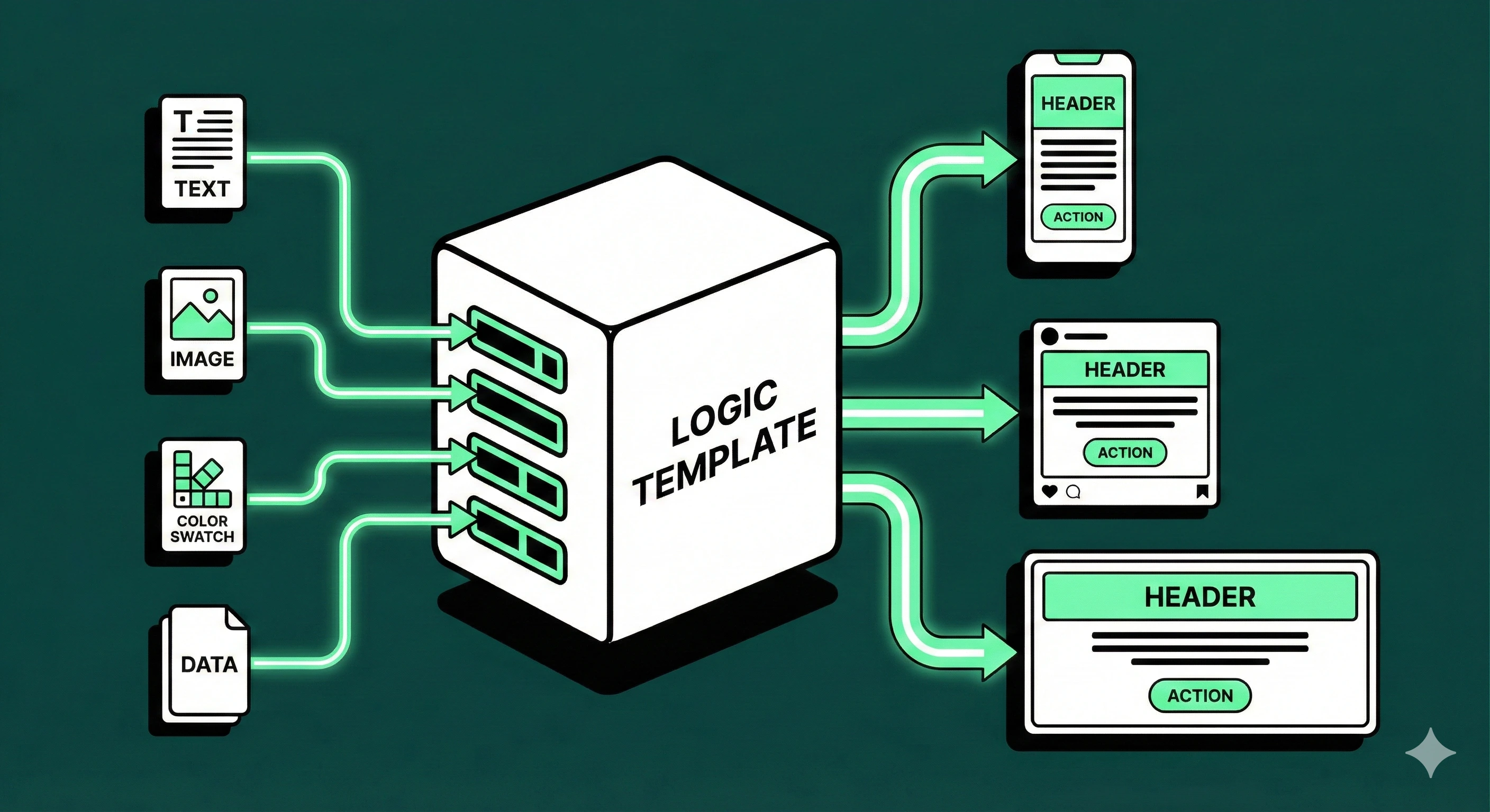 In practice, this means replacing manual resizing and versioning with reusable templates and defined generation rules. Instead of starting every project from scratch, teams build a "master logic" where branding, constraints, and variations are pre-defined.