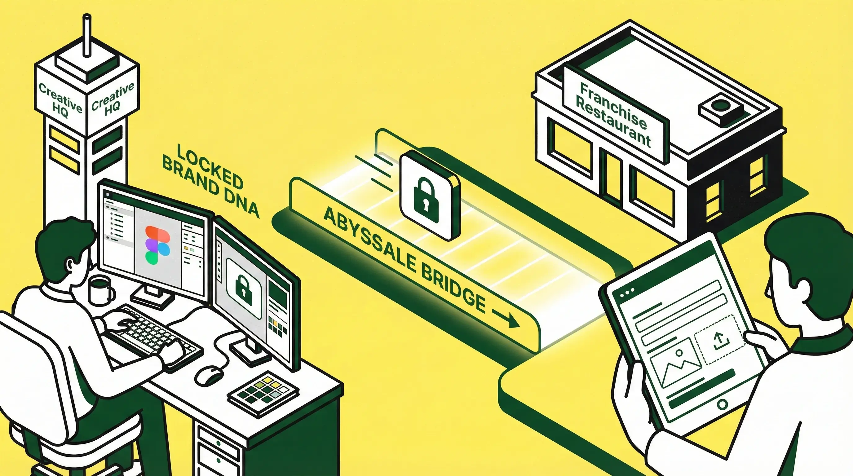 - The Franchisee (The Operator): They never see layers or pixels. They are provided with a simple, branded form via Abyssale Bridge.